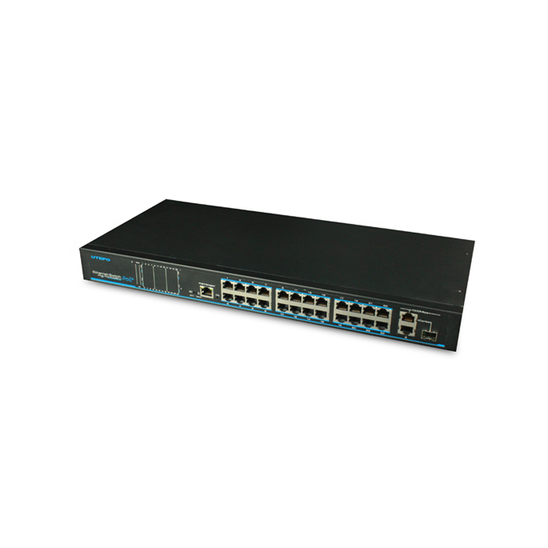 UTEPO UTP1-SW24-TP420 - неуправляемый PoE коммутатор. Имеет 24 порта с поддержкой PoE+ (30 Вт на канал, 802.3at), и 2 гигабитных UPLINK порта, а также 1 дополнительный гигабитных Combo порт. Общая мощность PoE до 370 Вт. Поддерживает управления PoE по веб интерфейсу и в режиме реального времени через LED дисплей. Устройство можно широко использовать в системах мониторинга безопасности видео, сетевых проектов и т.д.Особенности