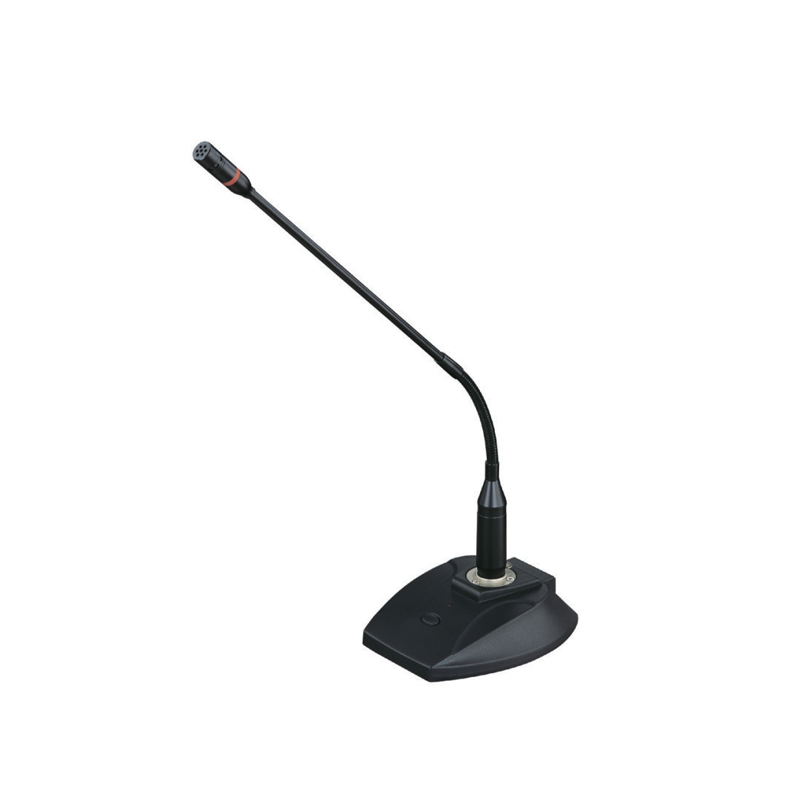 ITC T-511D - это конденсаторный дикторский микрофон предназначенный для использования в системах речевого оповещения. В передней части корпуса находится кнопка которая отвечает за включение и выключение микрофона, над ней же находится световой индикатор который загорается при включении.Конструктивно блок выполнен в виде подставки настольного исполнения и микрофона на гибкой шее, снабженного XLRM – для соединения с подставкой.