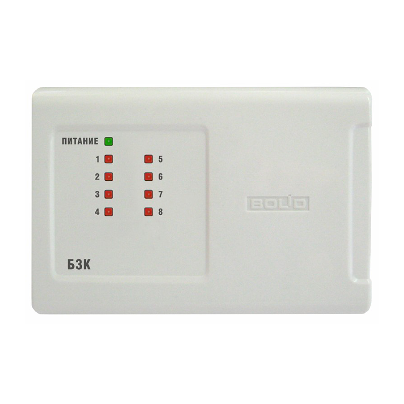 Блок защитный коммутационный БЗК предназначен для распределения тока источника питания (РИП-12, РИП-24 или им подобным) по 8-ми каналам и обеспечивает индивидуальную защиту по току для каждого из 8-ми каналов.Каждый канал оснащён самовосстанавливающимся предохранителем и индикатором красного цвета (индикаторы «1» – «8»), индицирующим перегрузку канала по току. Зелёный индикатор «ПИТАНИЕ» индицирует наличие напряжения на входе.